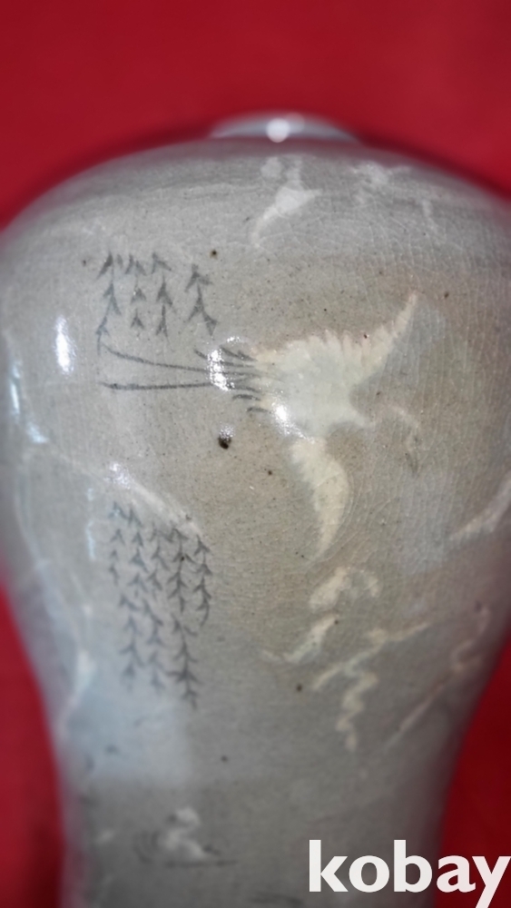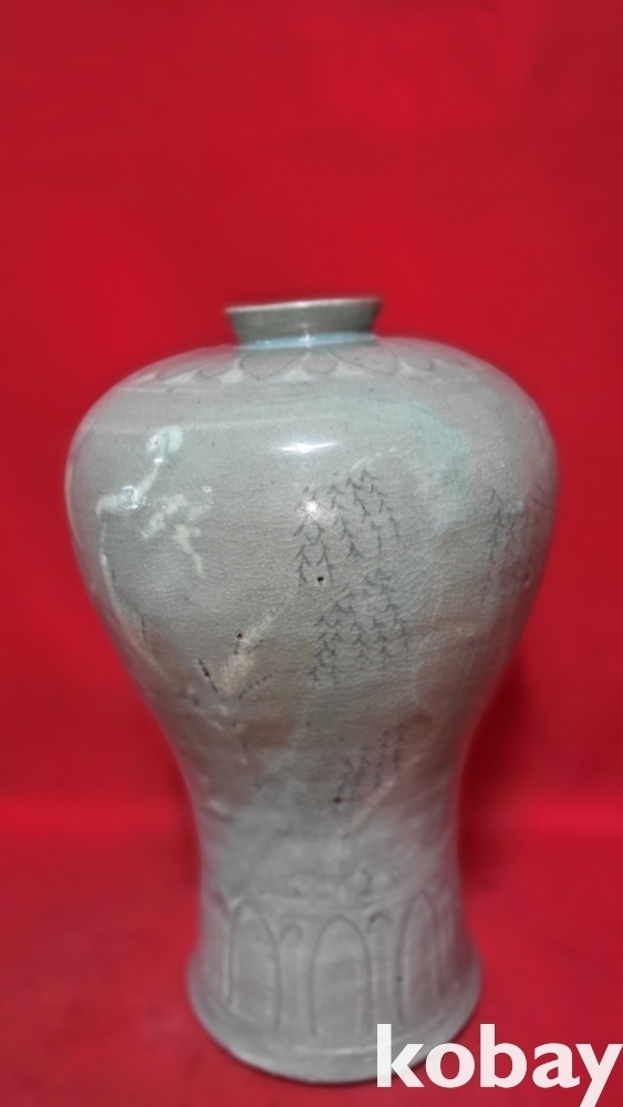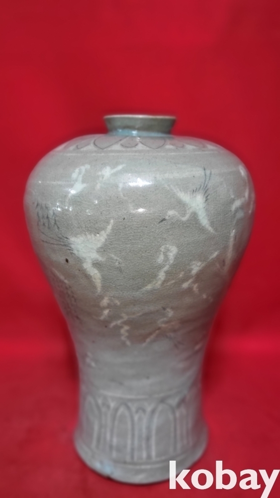 1세대 도예가 도암 지순탁 교수님의 청자 운학.(雲鶴) 수양버드나무와 오리 문양 매병입니다,