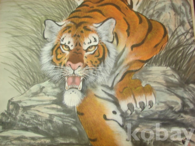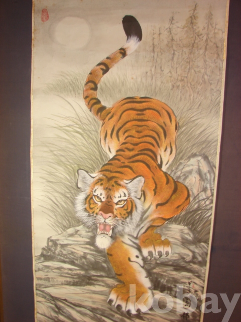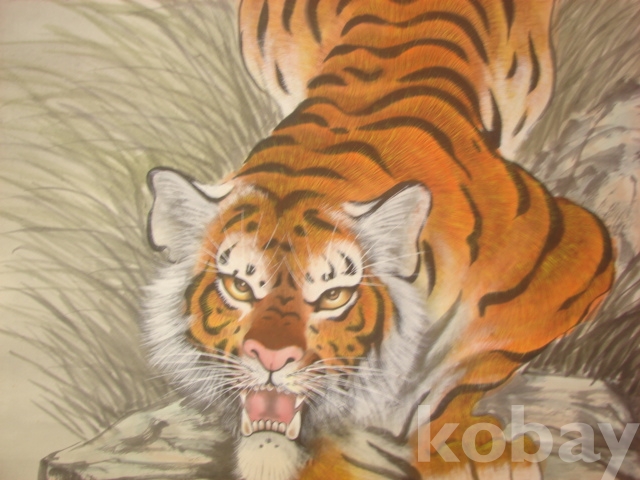 대전초대작가 금강 김호중(錦江 金浩中)의 호랑이 그림 전지(127×63)입니다.