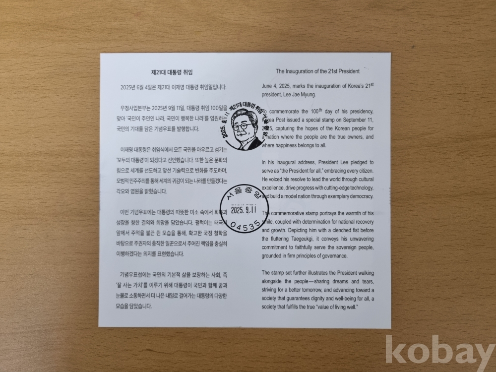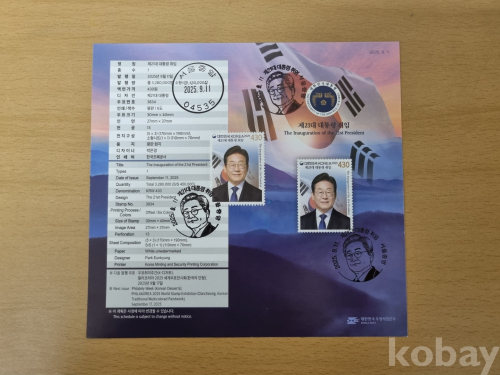 21대대통령취임 우표첨부초일안내카드
