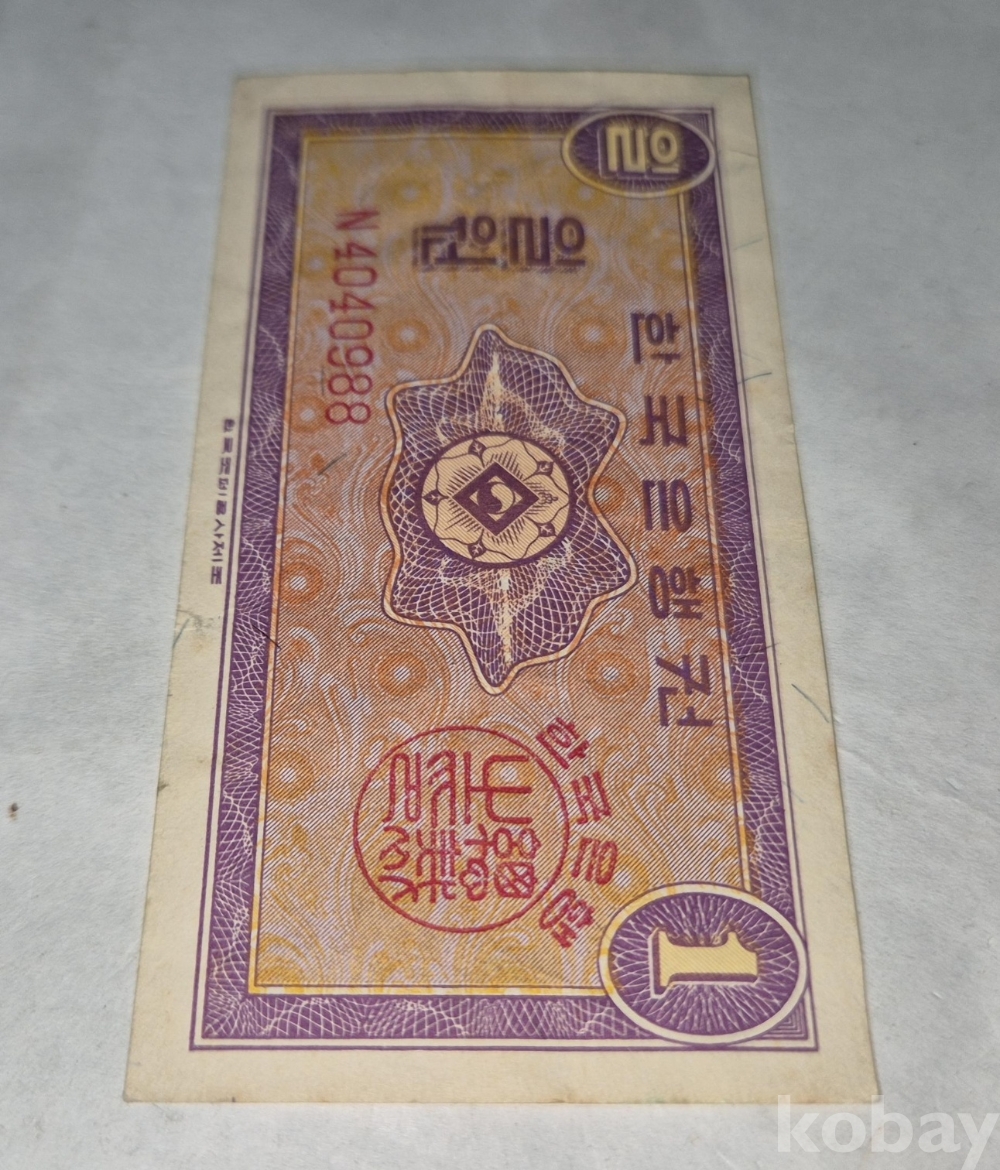 1962년 발행된 한국은행 영제 1원 지폐 1매입니다.