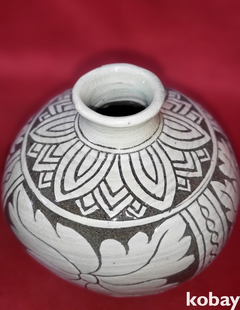본 기물은 시흥시 소장자 가정에서 다수의 고도자기와 유명한 현대 도자기 호산안동오 초석권순형 희제황규동