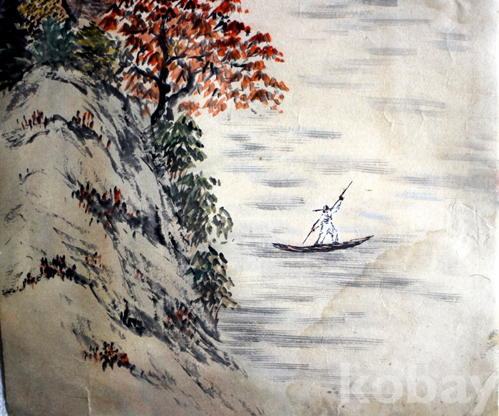 松岩(송암) 손영일의 추경산수 - 단풍이 짙은 강가의 가을 풍경