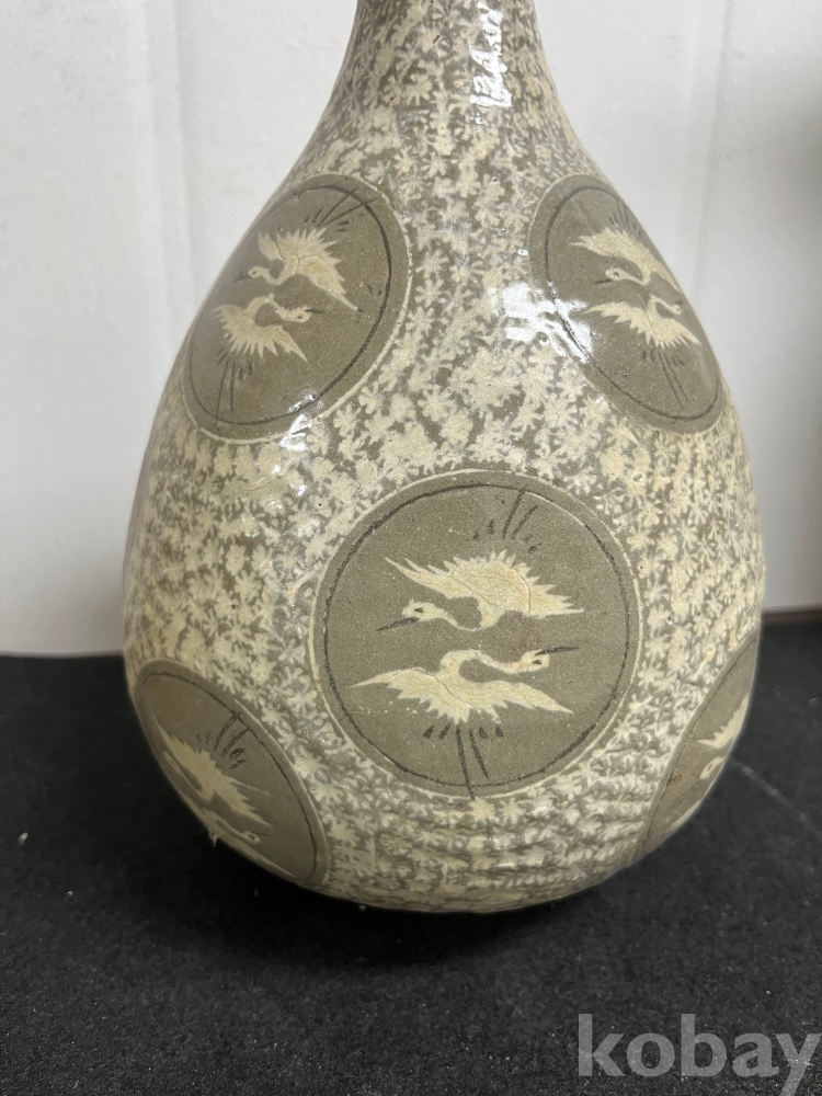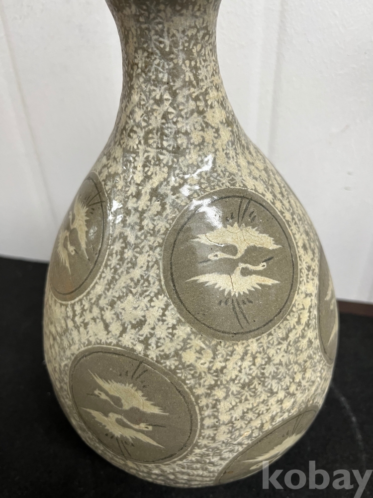 바탕은 인화기법으로 꽃무늬를 넣고 개광안에 쌍학무늬를 넣었습니다.