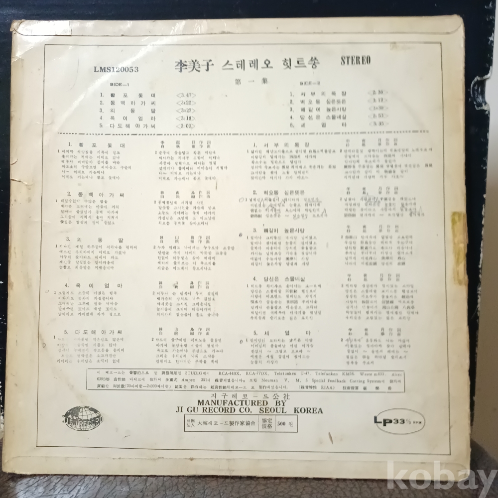 | 자켓상태 | VG : 주름, 접힘, 모서리 찢김 다수 | 음반상태 | VG : 생활 기스 다수, 가벼운 노이즈 존재 | 발매정보 | 초반 | 가사지여부 | 무 |