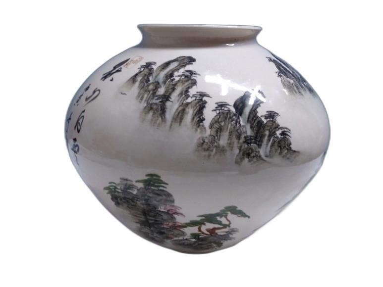 아름다운 산의 풍경을 표현한 도자기 입니다.