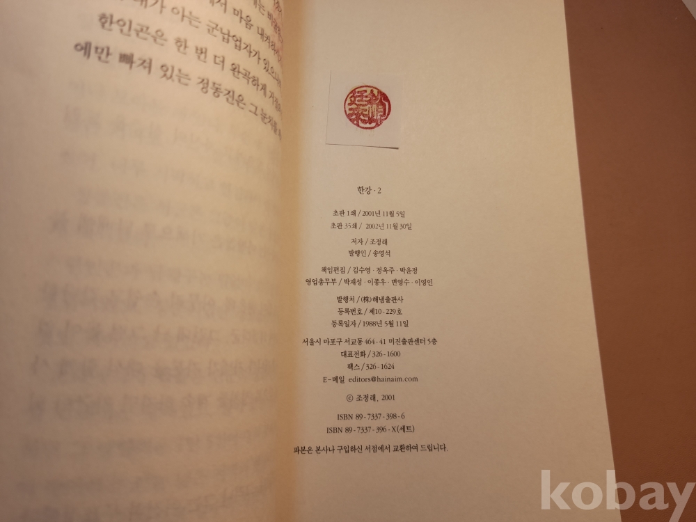 조정래 대하소설 한강 2 제1부 격랑시대