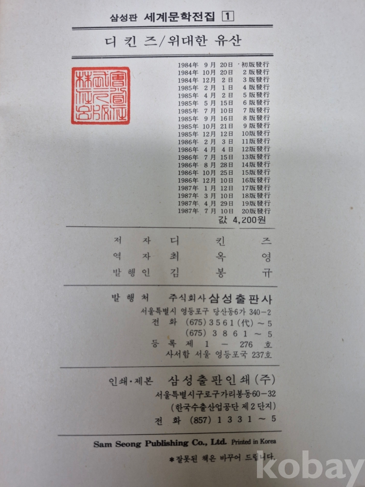 1987년 삼성출판사 세계문학전집 50권 완질 중 10/14*16/17/23/36 권 분실 44권 일괄 16*17*4