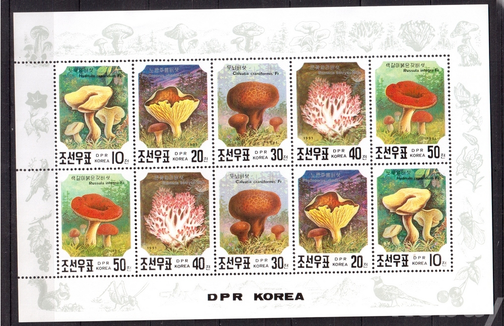 (버섯) 북한 1991.2.26 버섯 sheetlet of 10 MNH