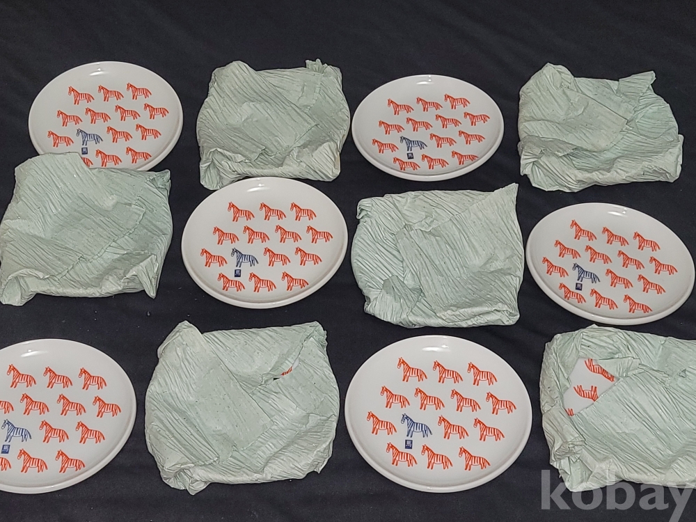 빈티지 얼룩말 그림의 접시 그릇 12개 세트입니다.