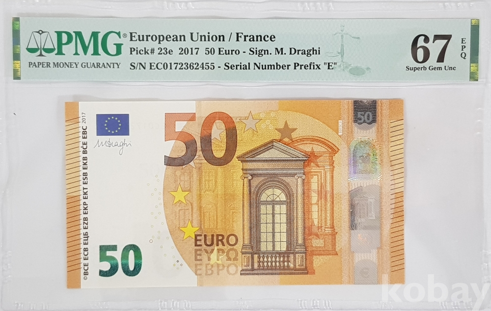 - 유럽연합 프랑스 2017년 50유로 PMG 67 EPQ 인증 지폐