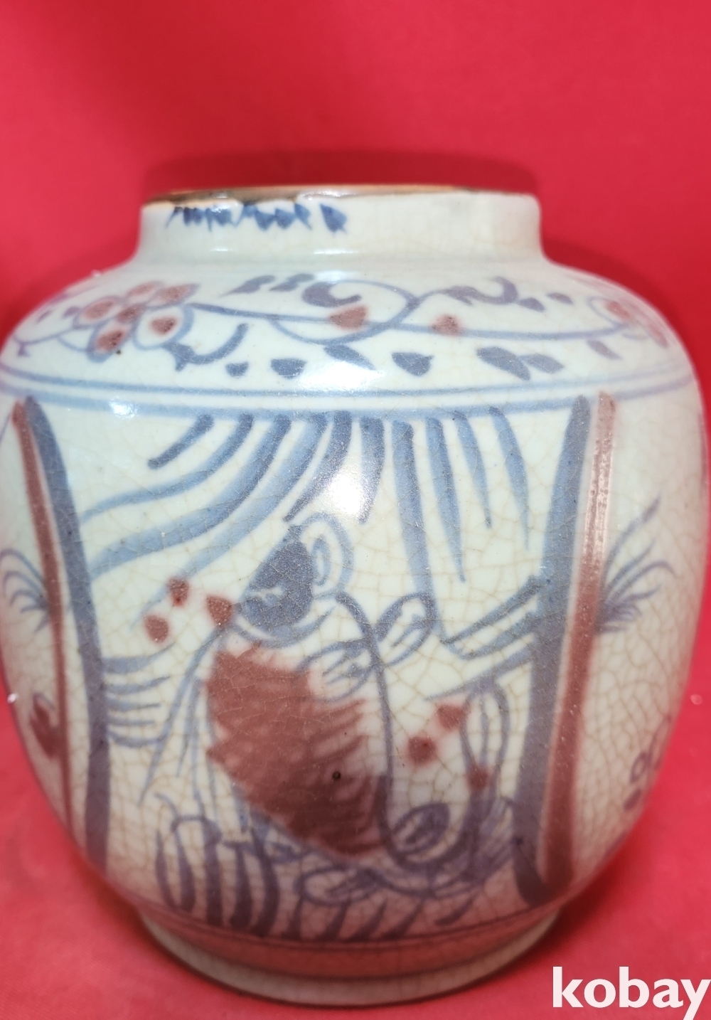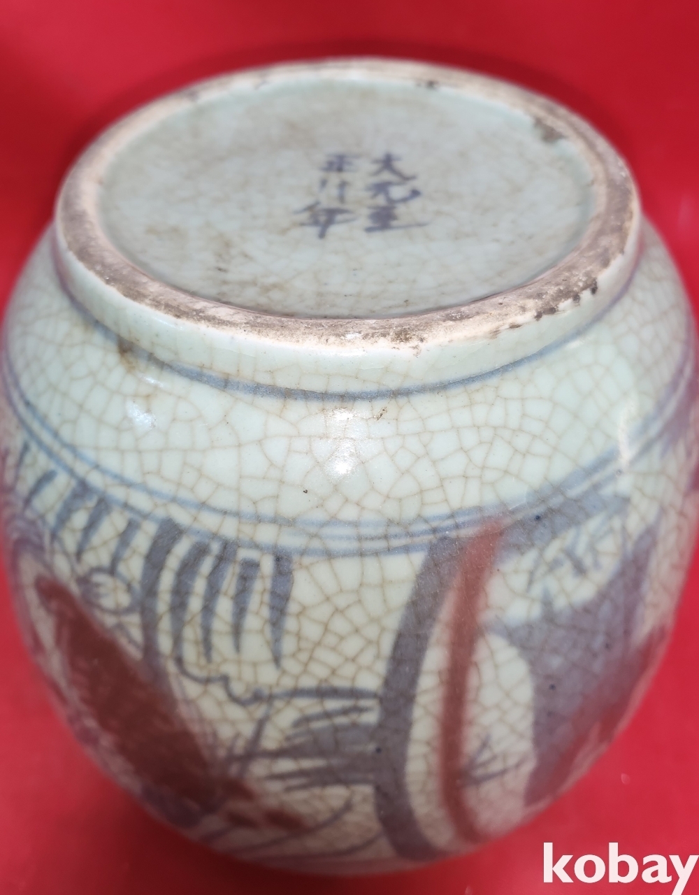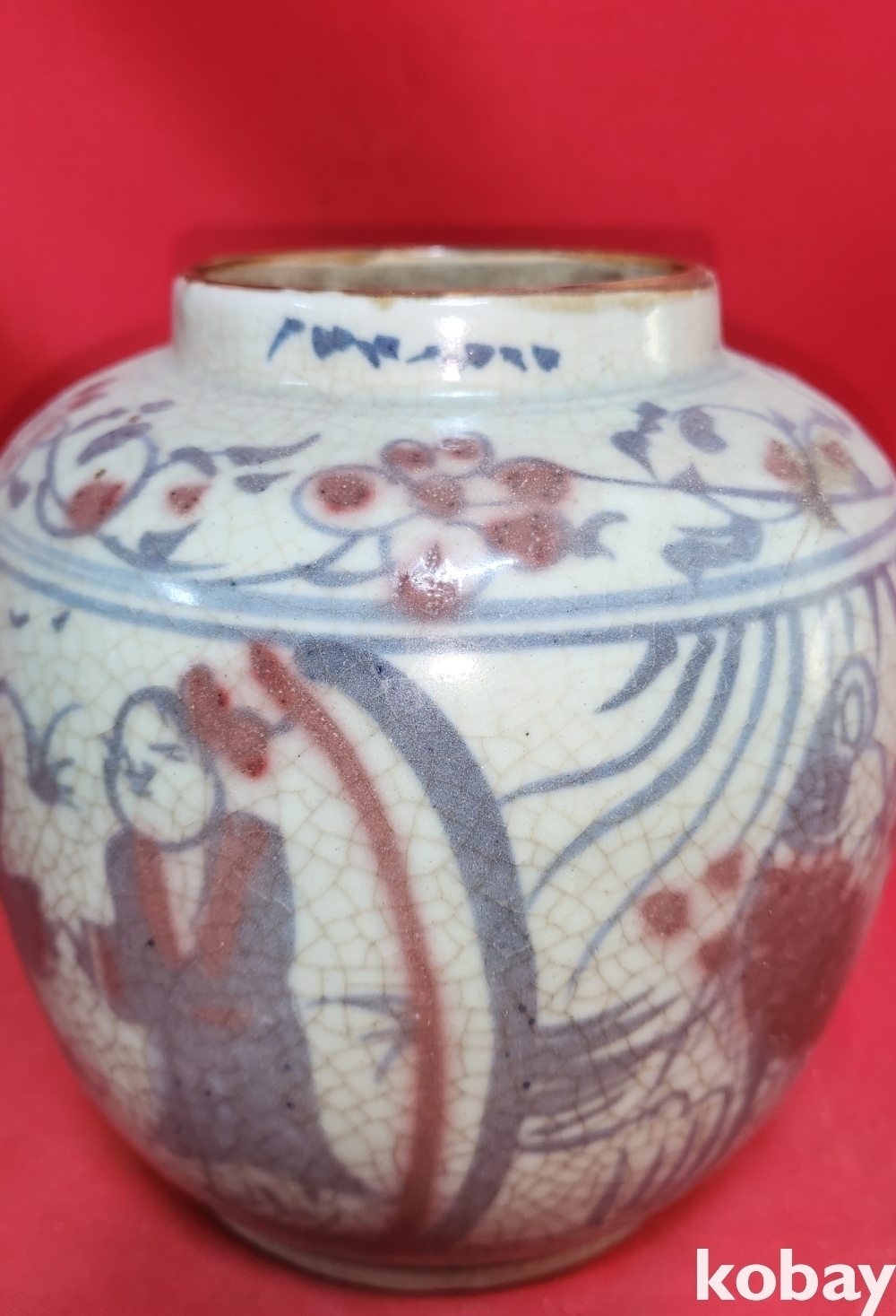대원지정8년제 관지 청화유리혼 빙렬이 만개한 인물문양 호입니다,