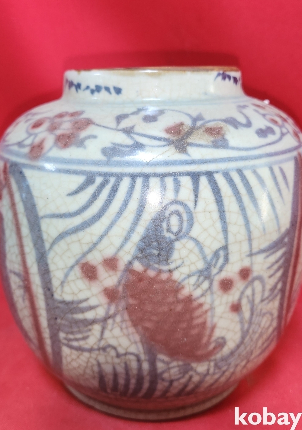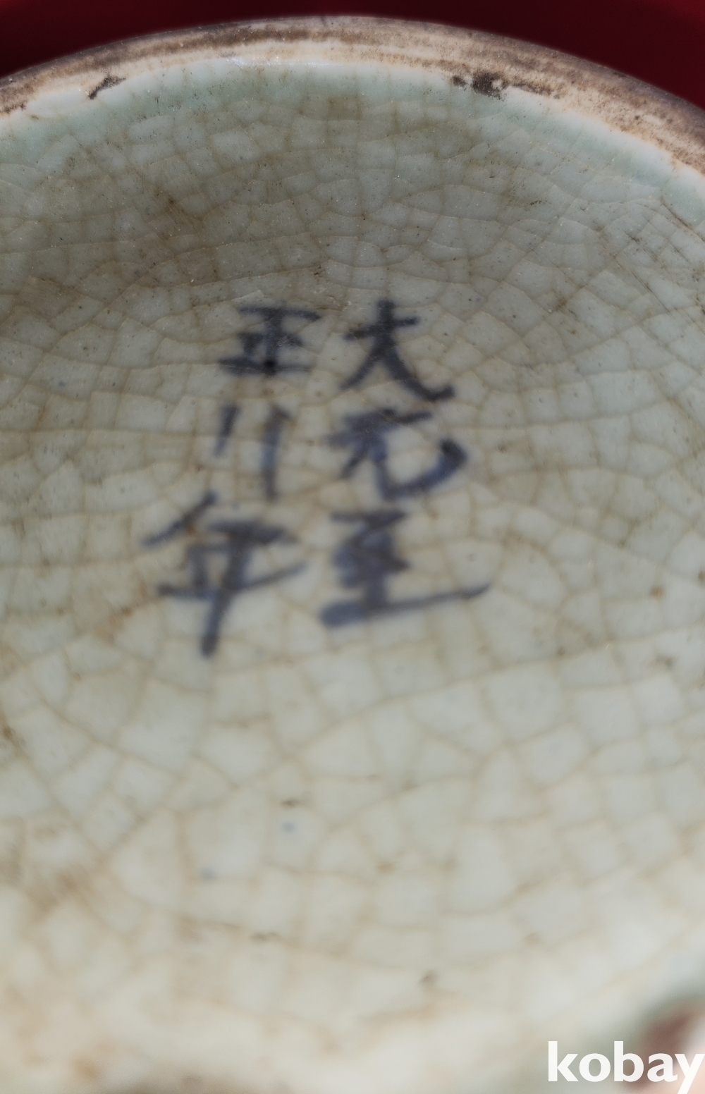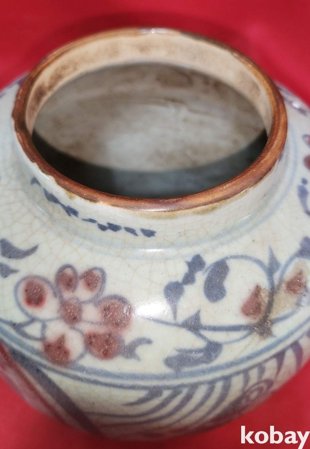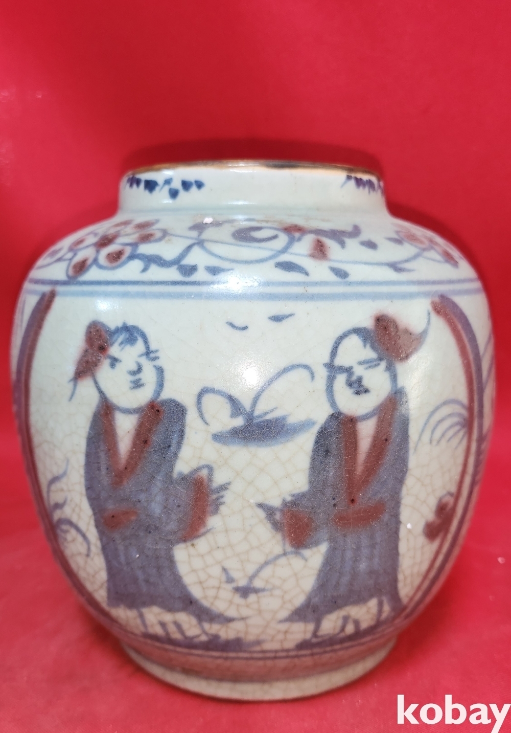 대원지정8년제 관지 청화유리혼 빙렬이 만개한 인물문양 호입니다,