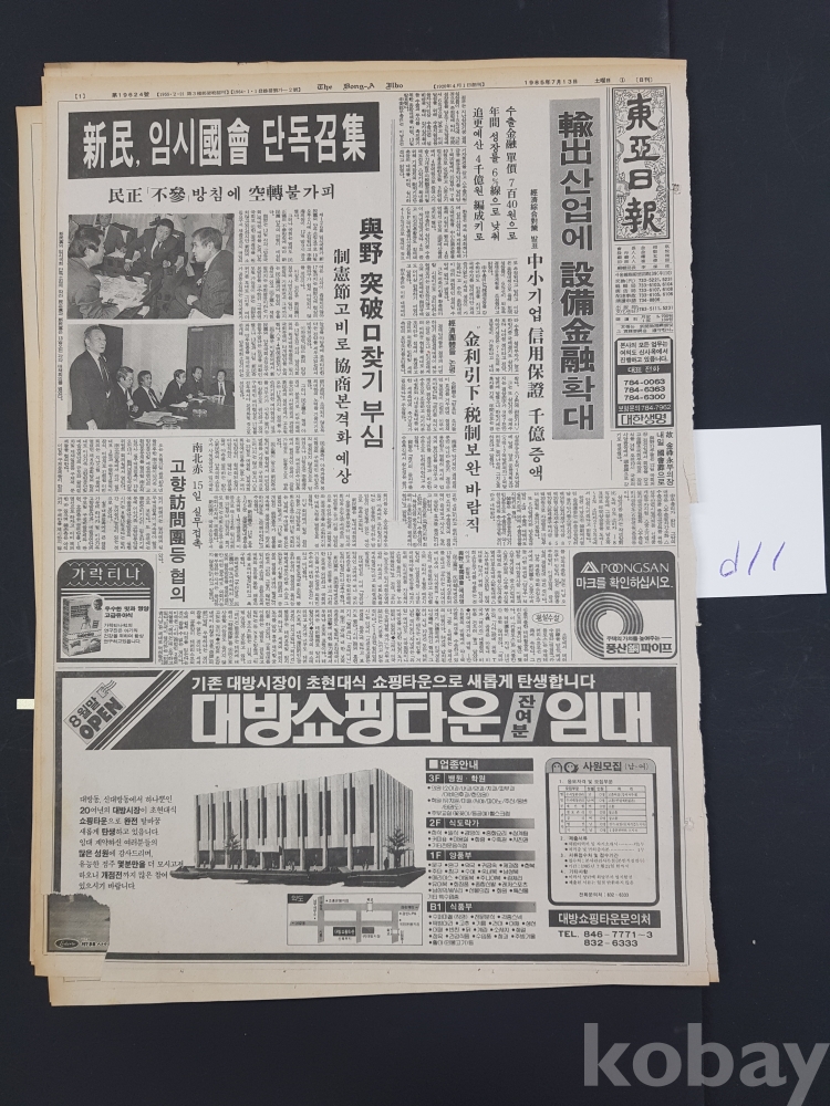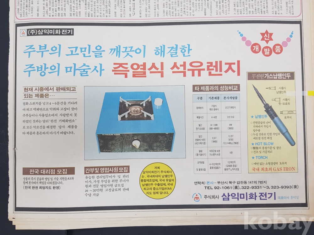 **** 1985.07.13(동아일보)/삼익미화전기 즉열식 석유렌지 광고포함/약 12면