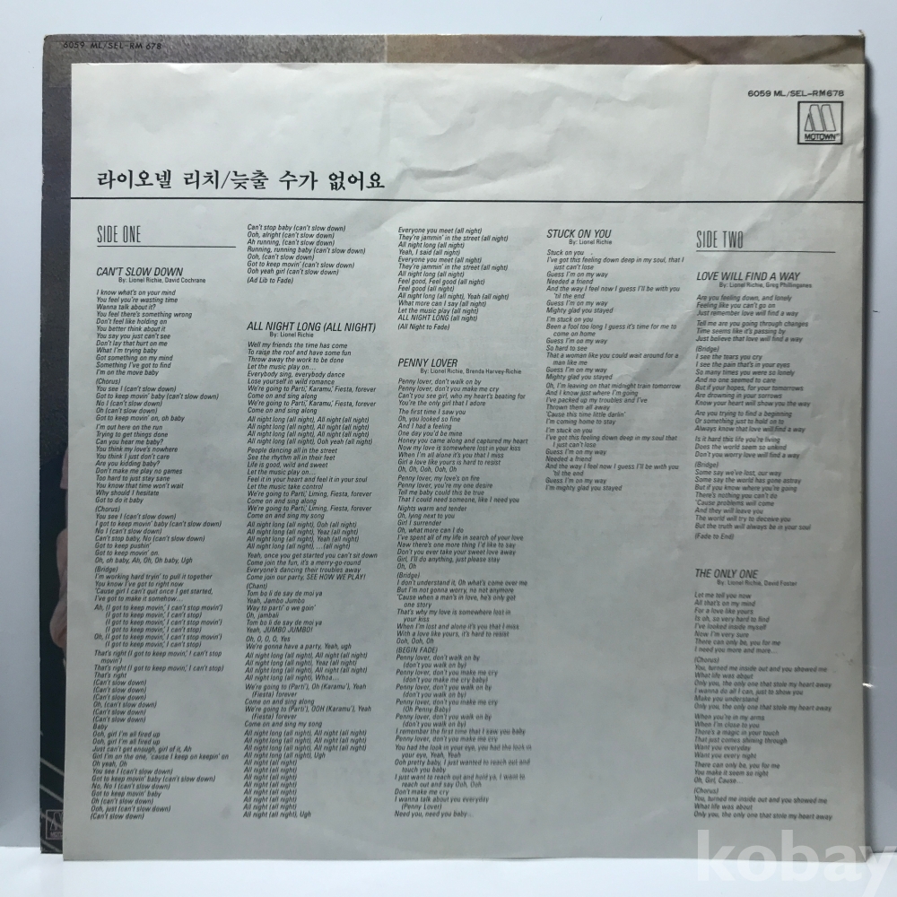 LP 30,900-15 Lionel Richie - Can't Slow Down . 83 성음 자켓 EX+ 알판 EX
