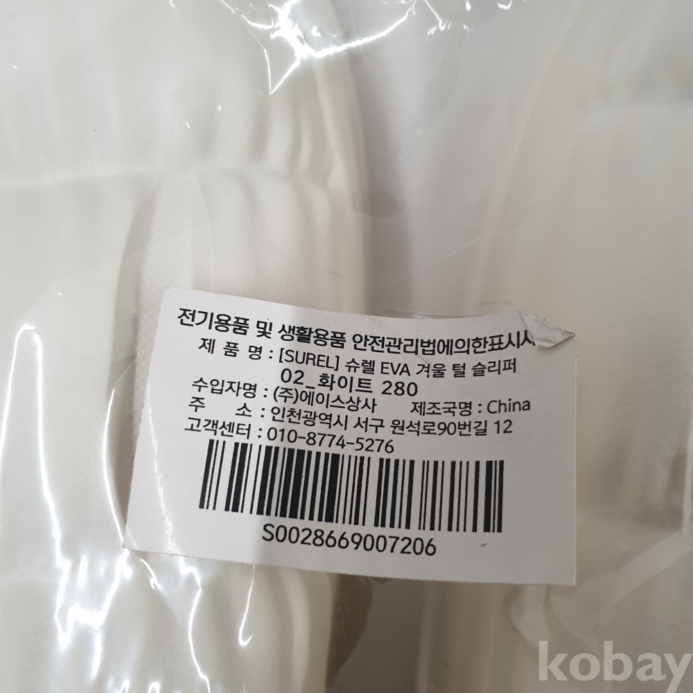 [천원경매] 12-0025 겨울 털 슬리퍼 (흰색, 280, 미개봉)