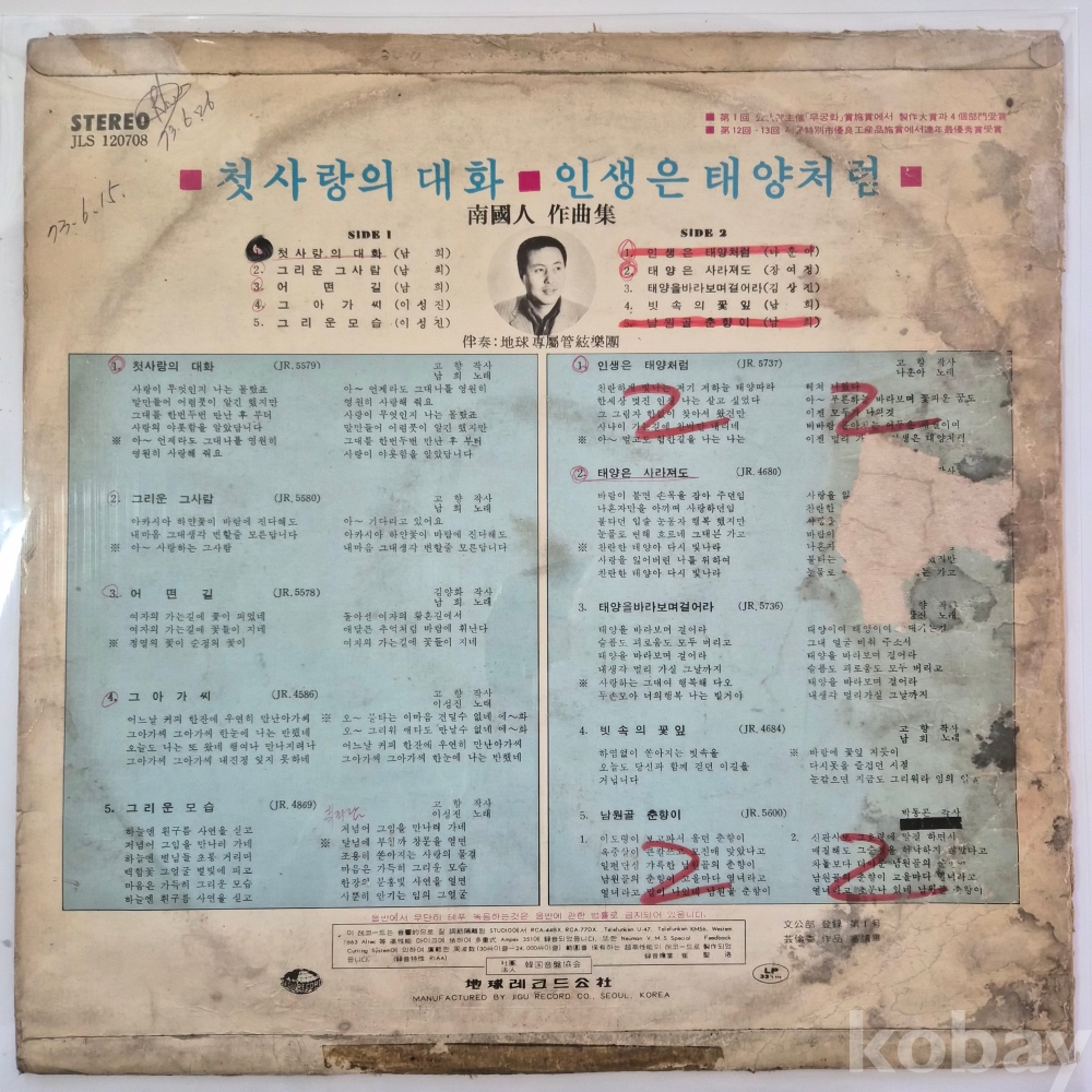 [추억의 희귀 LP 기획전] (남 희/이성진/나훈아/장여정 外) 백색라벨 / 첫사랑의 대화 ☆ 인생은 태양처럼
