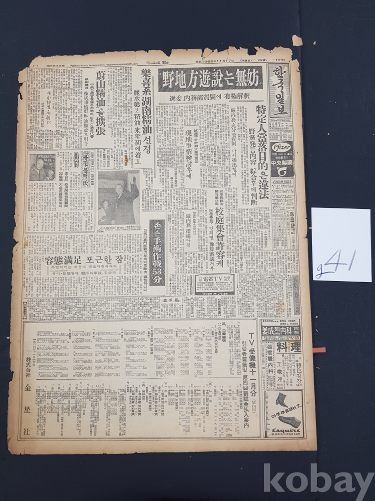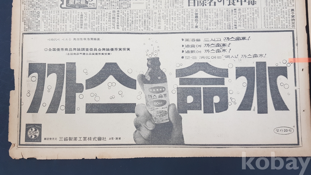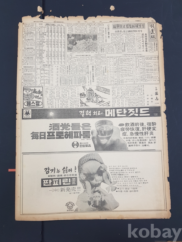 **** 1966.11.17(한국일보)/삼성제약공업주식회사 까스명수 등 광고포함/약 4면