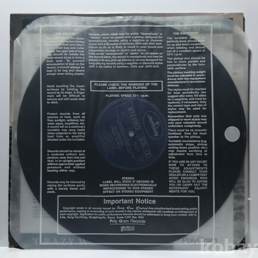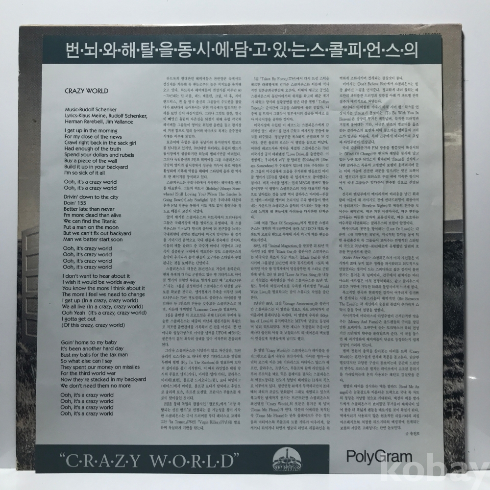 LP 30,900-236 Scorpions - Crazy World . 91 성음 자켓 EX+ 알판 EX