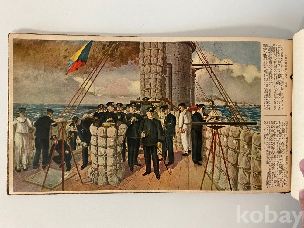러일전쟁: 도고 헤이하치로 제독의 쓰시마 해전 지휘 모습(전함 미카사), 눈 덮인 고지 돌격 장면 등.