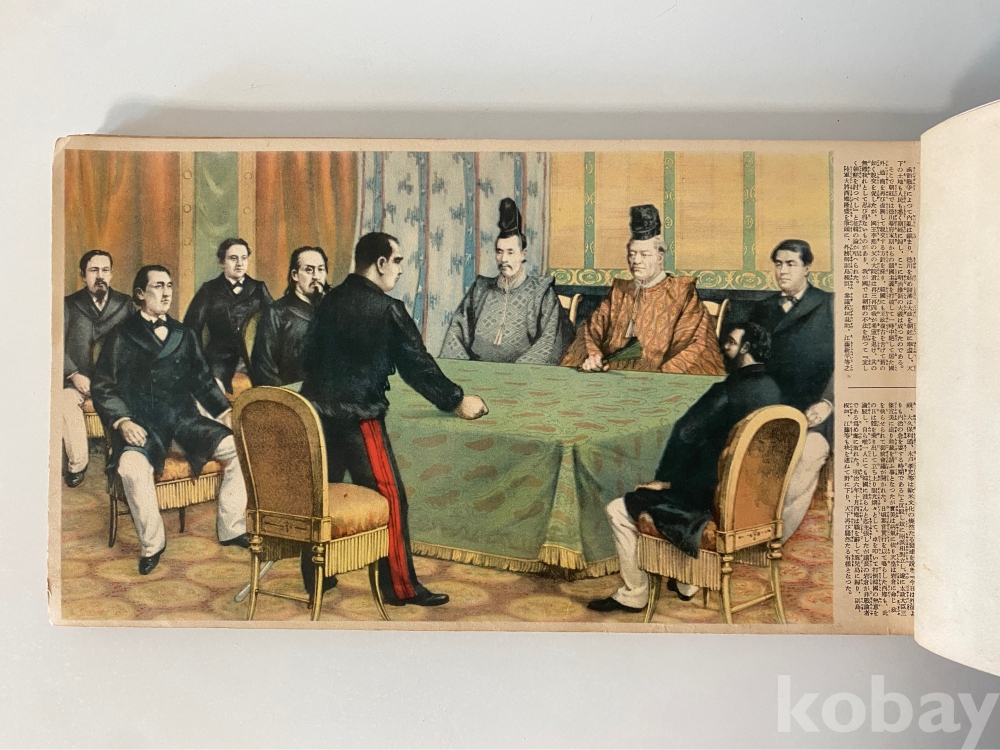러일전쟁 직후인 메이지 38~39년(1905-1906) 무렵 일본에서 발행된 고급 석판 화보집 **<전후화첩: 제국의 영예>**입니다. 이 화첩은 메이지 유신 이후 일본의 근대화 과정부터 세이난 전쟁, 청일전쟁, 그리고 러일전쟁에 이르는 주요 전쟁사를 화려한 채색 석판화로 담아낸 기록물입니다.