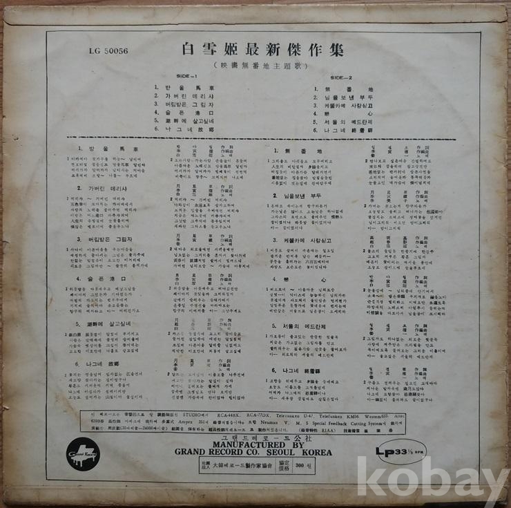 | 자켓상태 | EX : 약간의 마모, 모서리 찢김 존재 | 음반상태 | EX : 재생에 영향 없는 가벼운 기스 존재 | 발매정보 | 초반 | 가사지여부 | 유 |