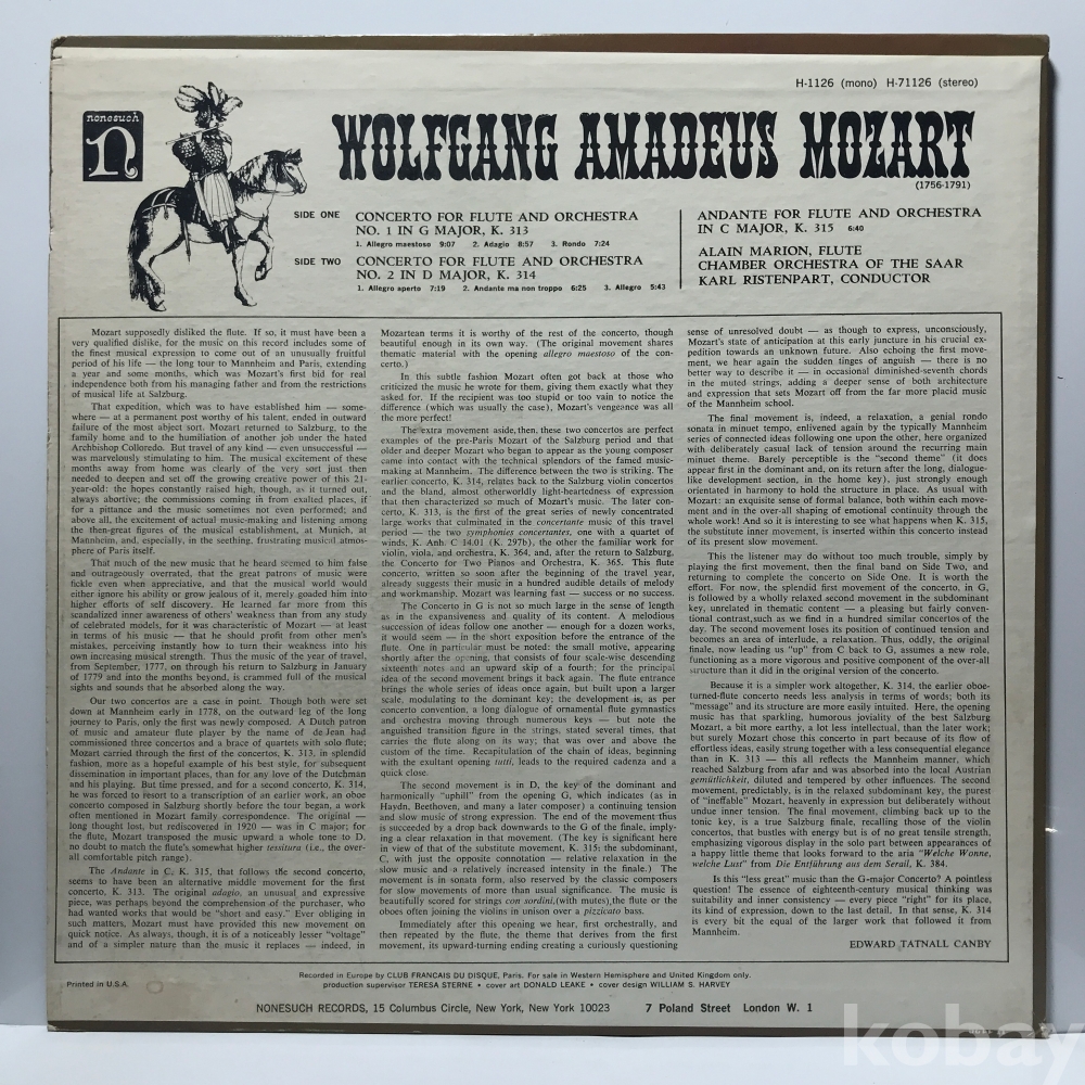 LP 30,900-25 Mozart Concerto No.1 In G Major For Flute - Karl Ristenpart . 수입 자켓 EX+ 알판 EX