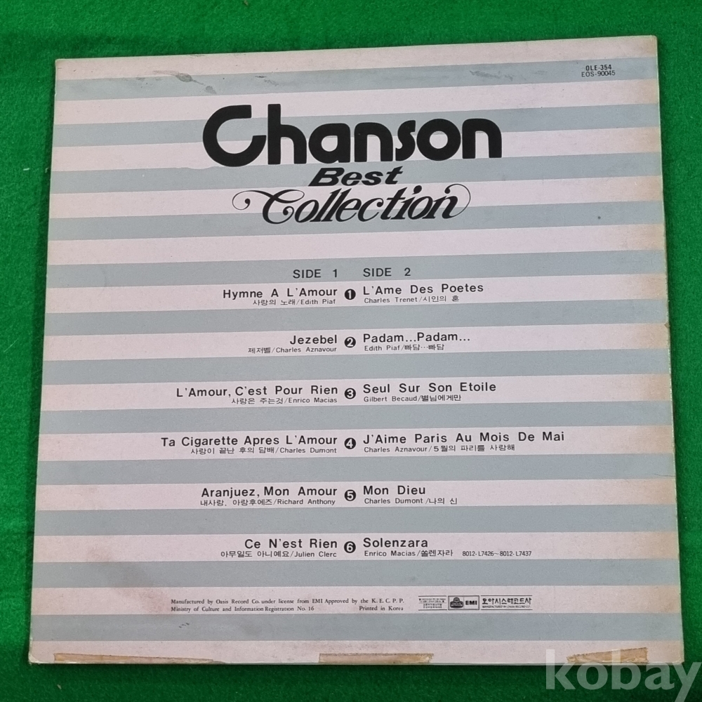 | 자켓상태 | EX : 약간의 마모, 모서리 찢김 존재 | 음반상태 | EX : 재생에 영향 없는 가벼운 기스 존재 | 발매정보 | 알수없음 | 가사지여부 | 유 |