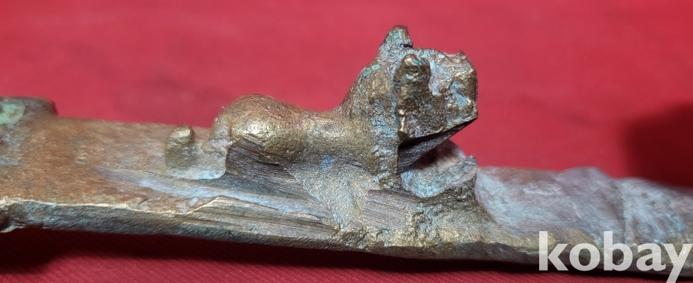 사자와 용은 황동 장식에 양각으로 돌출입니다,