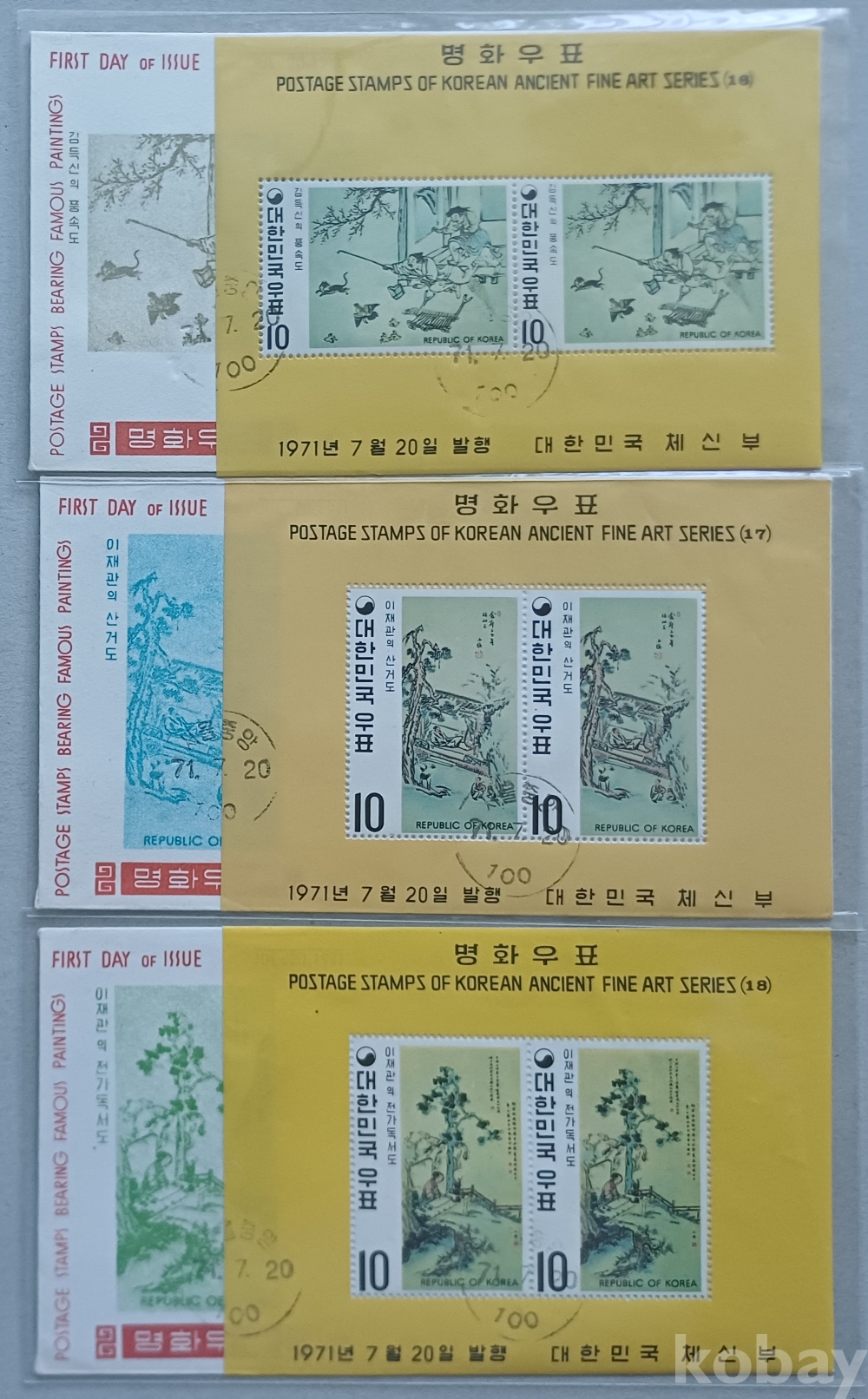 1971년 7월 20일 명화우표 5집 천공 시트 초일봉투 3종