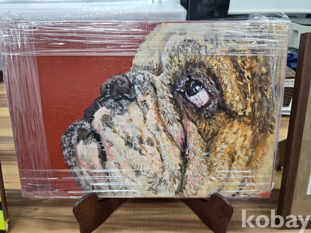 본 작품은 국내에서 반려동물 초상화를 전문적으로 작업해온 서양화가 김연석의 작품으로, 반려견의 표정과 시선을 중심으로 감정의 깊이를 포착한 유화 소품이다. 두터운 붓질과 밀도 있는 색감 표현을 통해 반려동물의 개성과 생명력을 사실적으로 담아냈으며, 붉은 계열의 배경과 대비되는 대상의 묘사가 화면의 집중도를 높인다. 감상용은 물론, 반려동물을 가족처럼 여기는 수집가에게 소장 가치가 높은 작품이다.