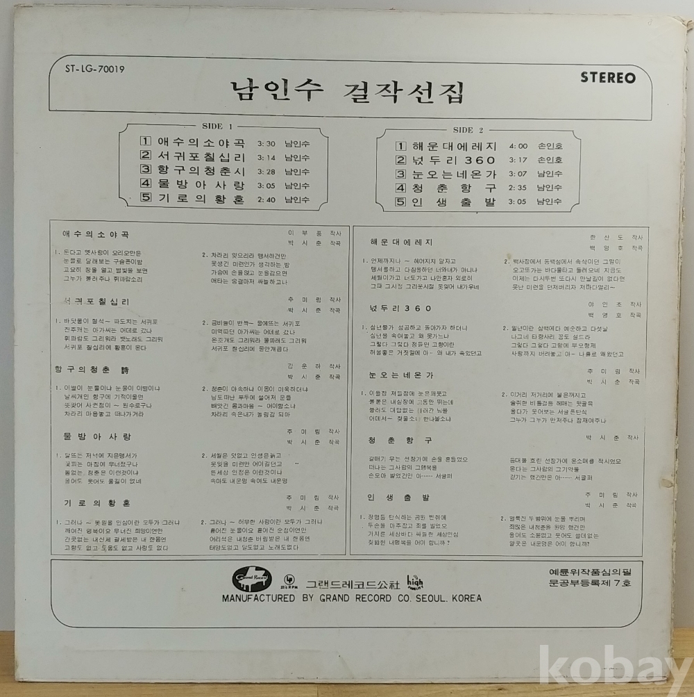 남인수 걸작선집 (애수의 소야곡 / 해운대에레지) 그랜드레코드 초반