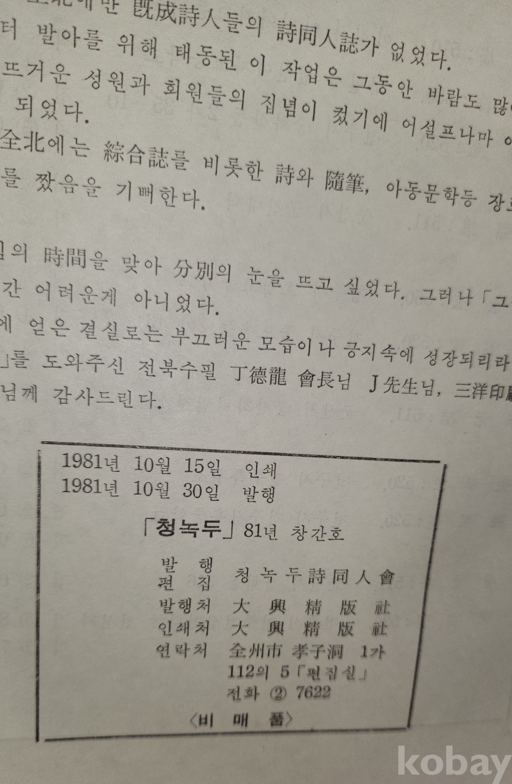 1981년에 발간된 시집 청녹두 창간호입니다,