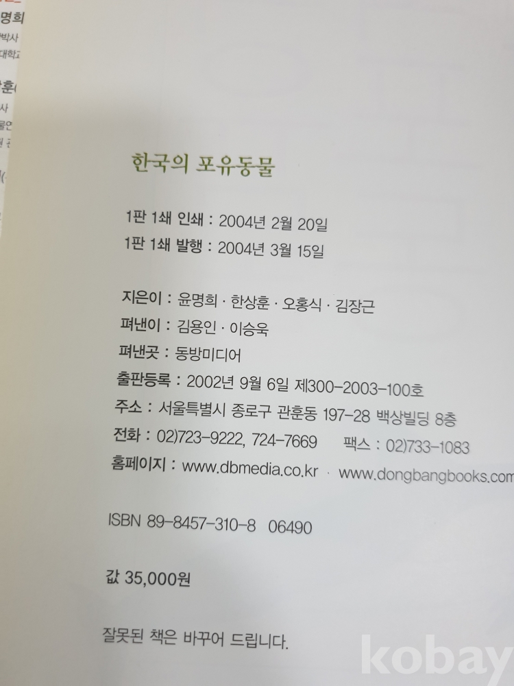 {천원경매}12-1101 한국의 포유동물 책(5권이상묶음배송불가)