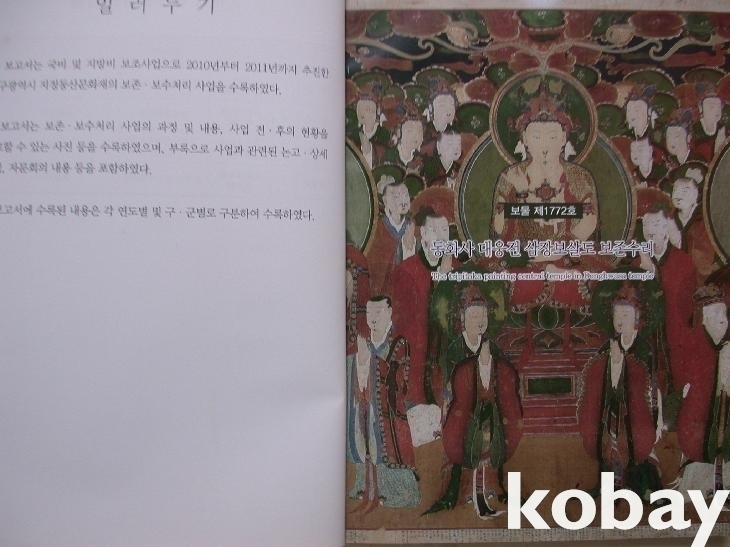 보물인 <동화사삼장보살도>를 비롯한 총4건의 보존처리 및 보수공사 보고서이다. 상세한 처리과정을 사진도판과 함께 수록하였다.