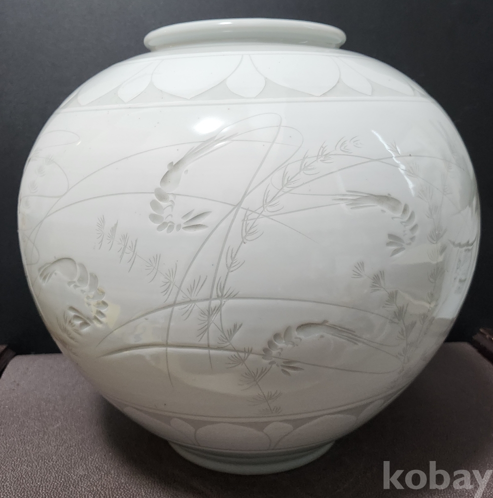 < 1세대 여류 도예가 > 명장 월당(月堂) 이순길(李順吉) 백자음각어해도문호 白磁陰刻魚蟹圖紋壺