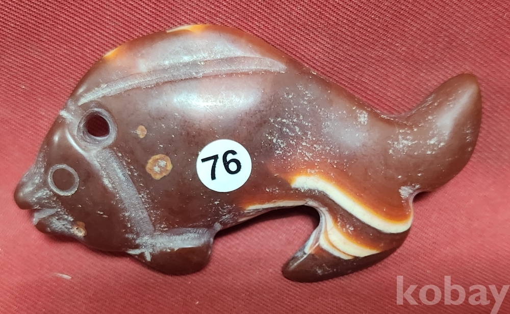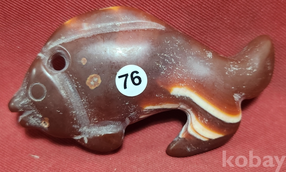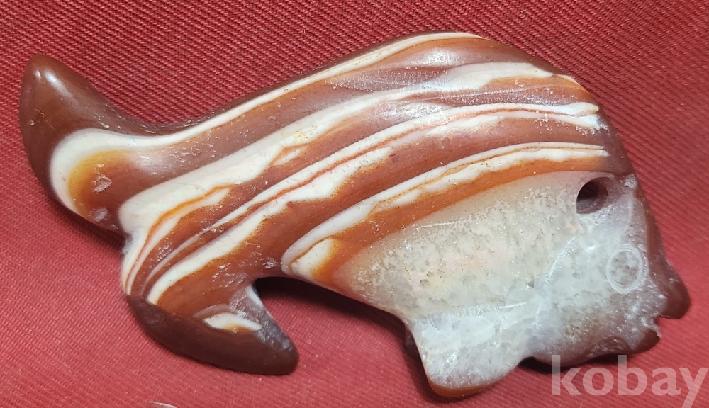 홍옥(紅玉)으로 완성된 물고기 문양 조각품입니다,