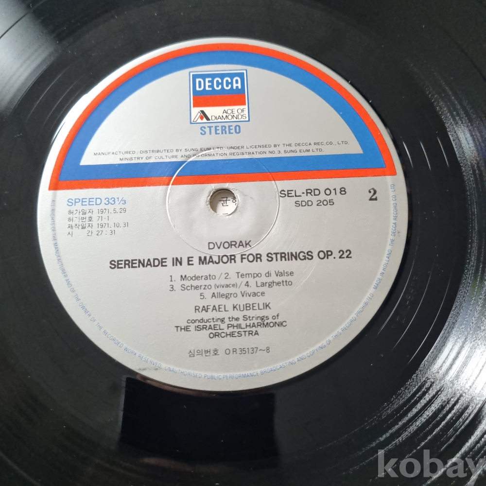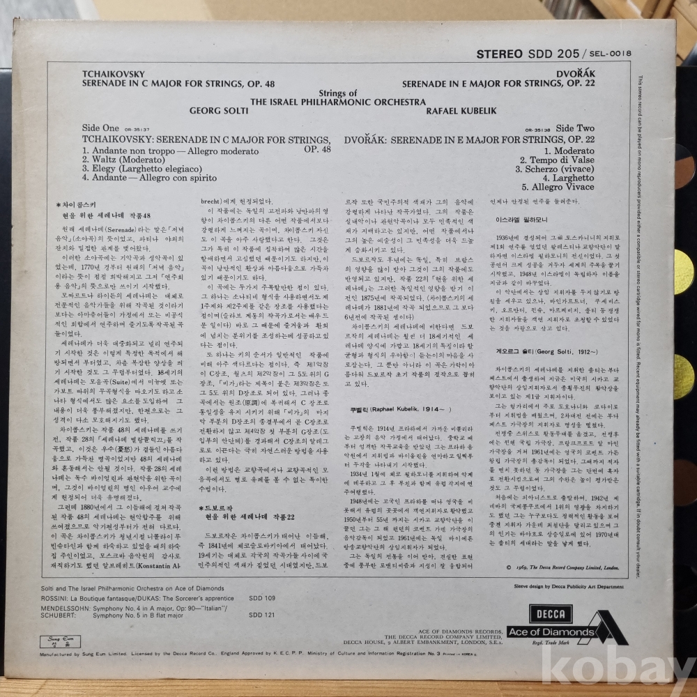 차이코프스키 현을위한세레나데 작품48, 드보르작 현을위한세레나데 작품22 DECCA 성음 1971년