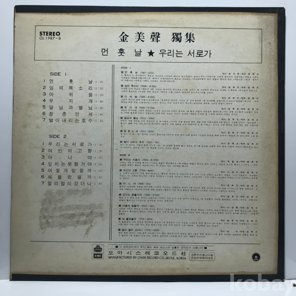 | 자켓상태 | VG : 주름, 접힘, 모서리 찢김 다수 | 음반상태 | EX : 재생에 영향 없는 가벼운 기스 존재 | 발매정보 | 알수없음 | 가사지여부 | 무 |