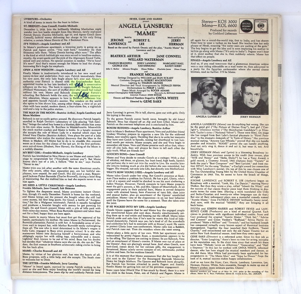 Jerry Herman / Featuring Angela Lansbury Presented By Fryer*, Carr* And Harris* – Mame (A New Musical) 미국반