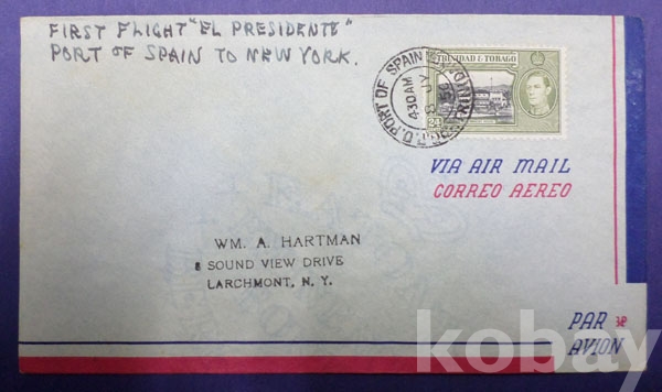 [테마틱] 항공*우편/ 1950년 트리니다드토바고 포트모브스페인 → 미국 뉴욕 FFC
