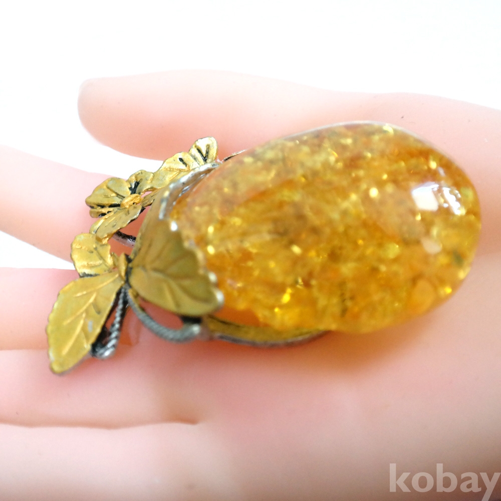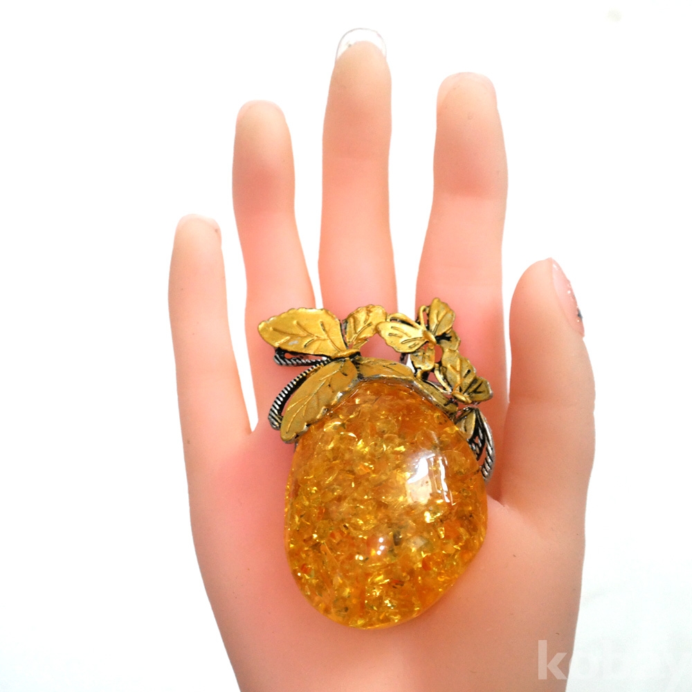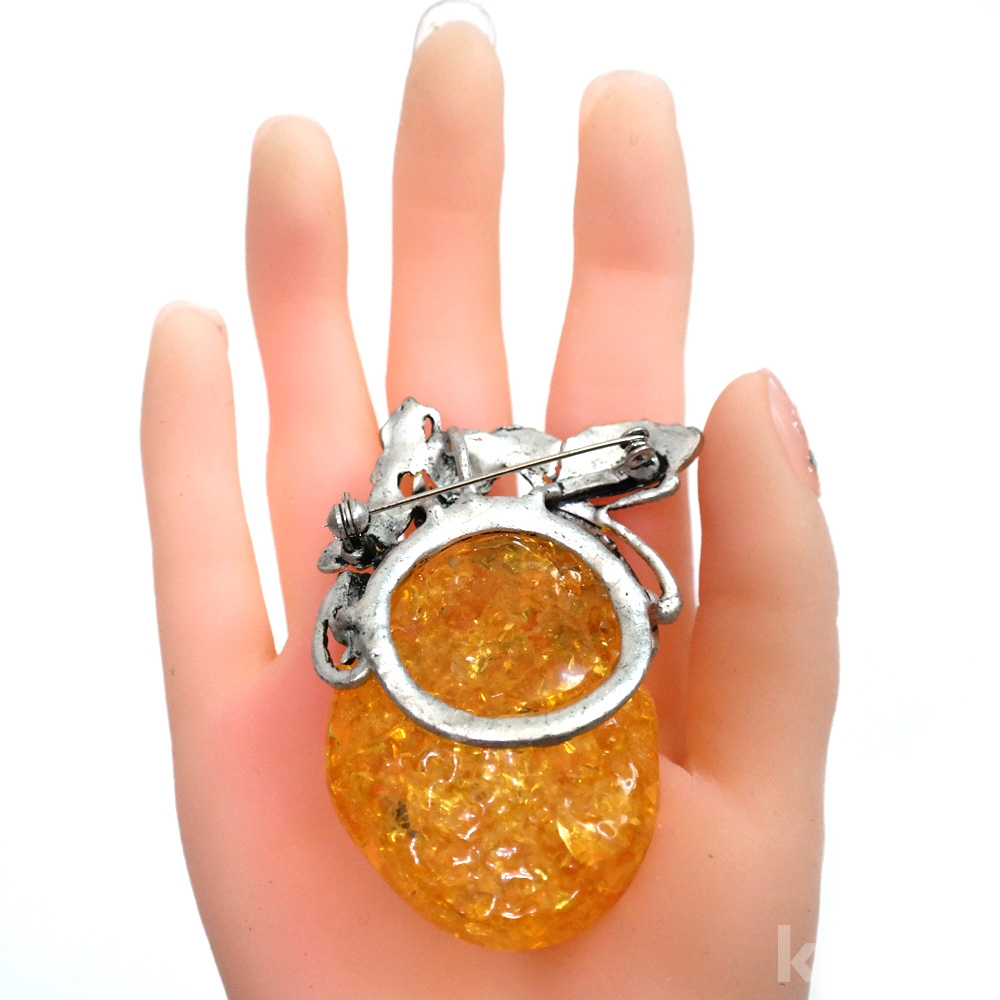 국산 인조 호박 노랑 옐로우 합성석 열매 장신구 목걸이 펜던트 브로치 겸용 다용도 B