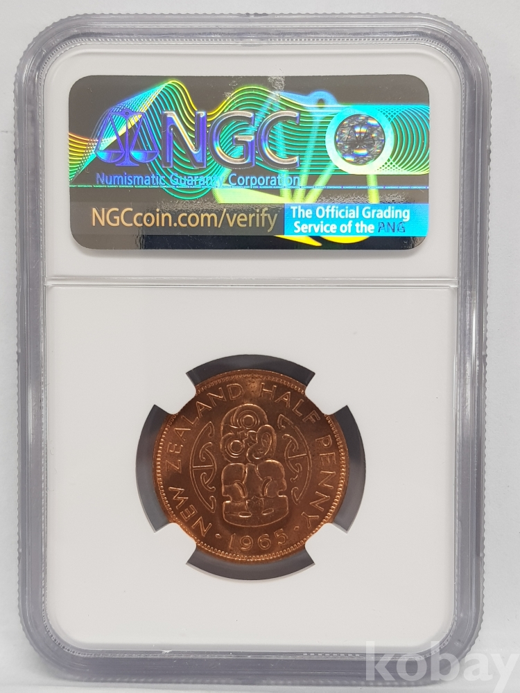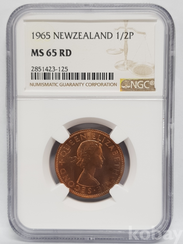 - 뉴질랜드 1965년 1/2페니 NGC MS 65 RD 그레이딩 주화