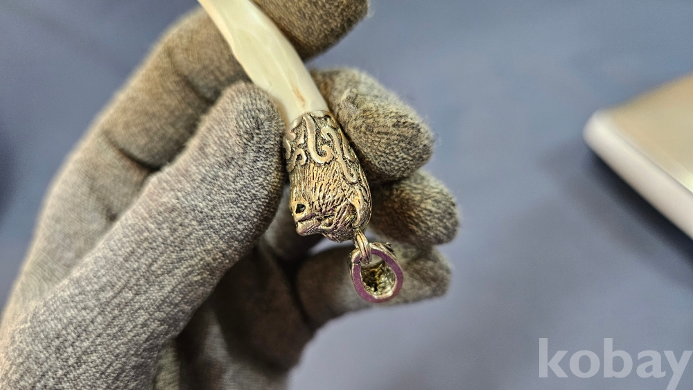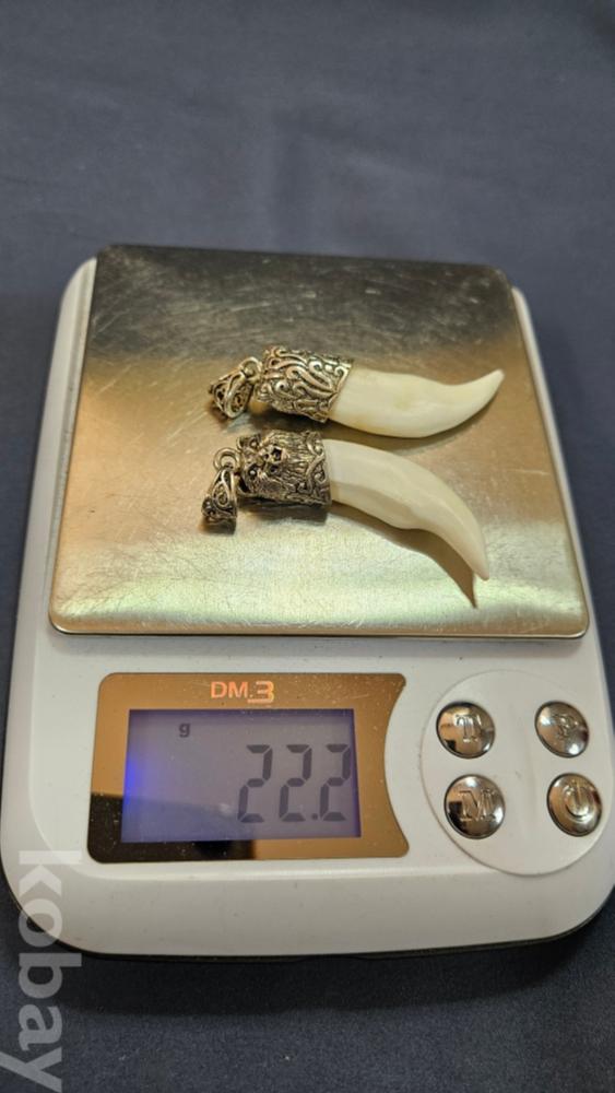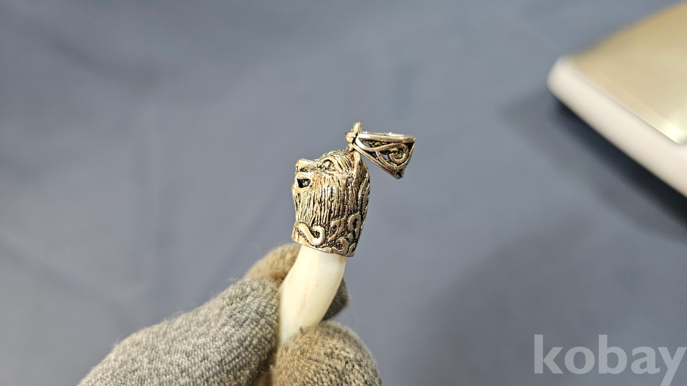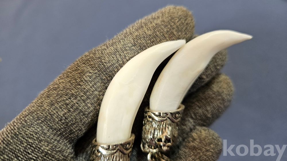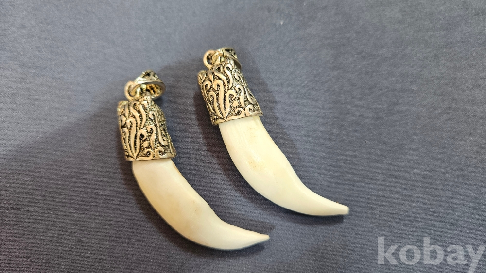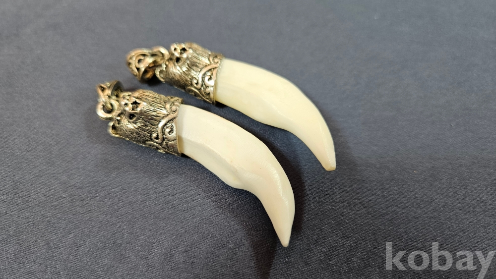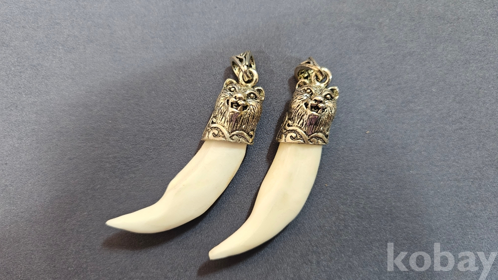 곰 장식이 보이는 이빨 목걸이 2점 일괄입니다.