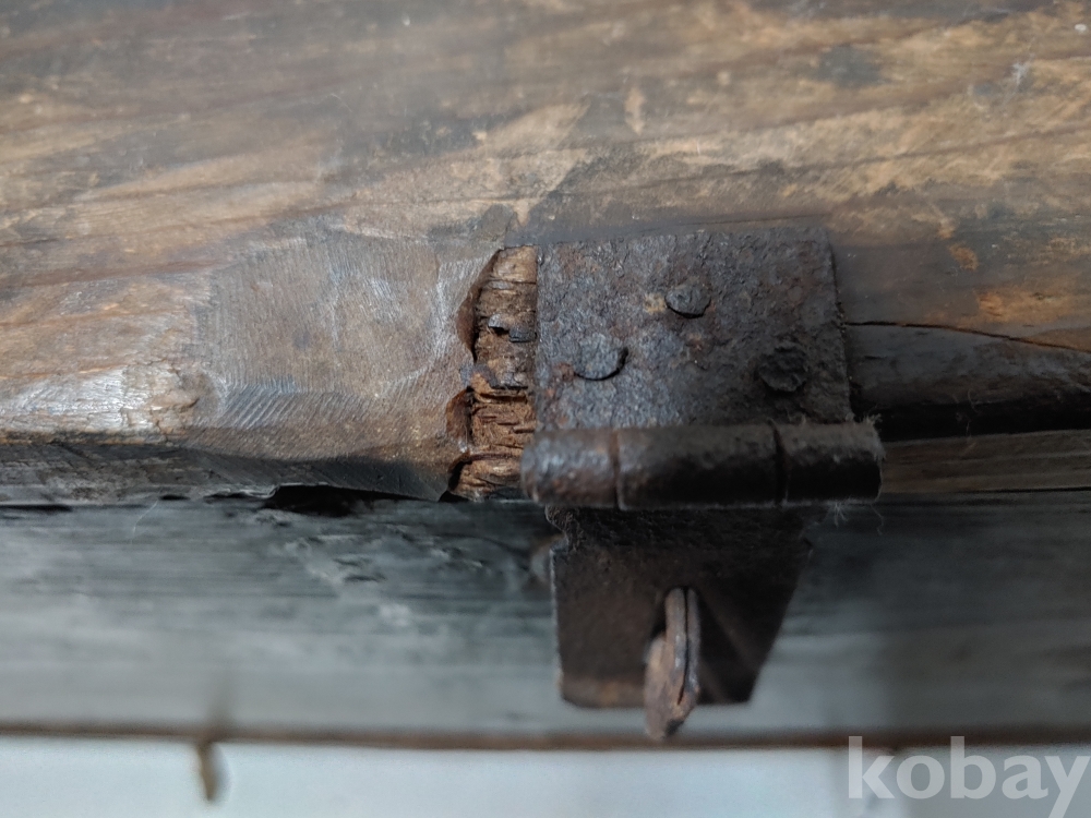 세월의 흔적이 잠금장치의 옆 왼쪽편에 있으며