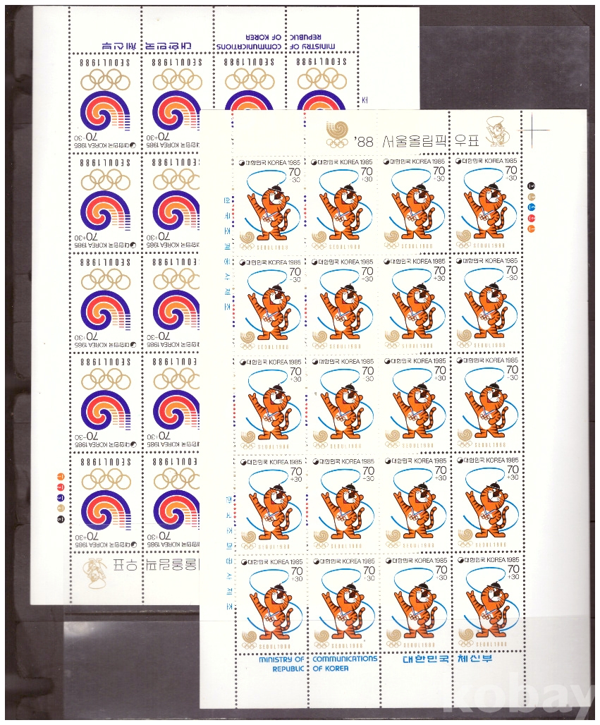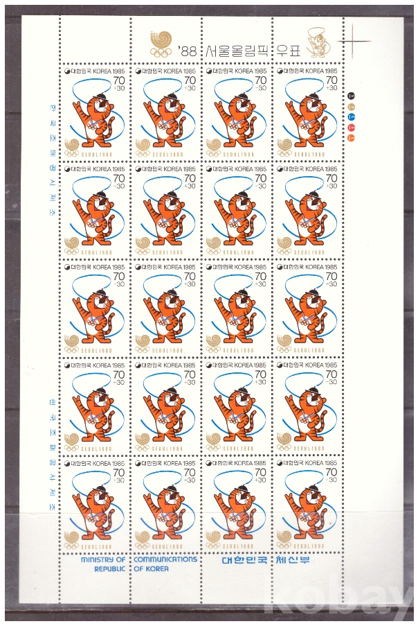 (서울올림픽) 1985.3.20 '88 서울올림픽(제1집) 2완 sheet of 20 MNH
