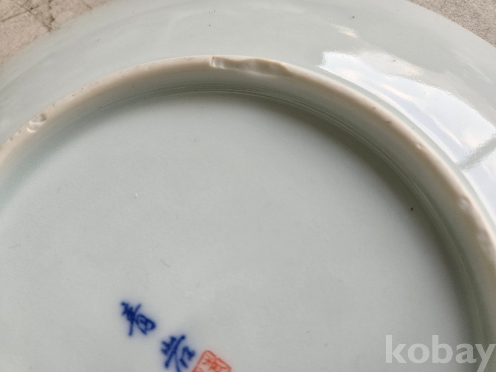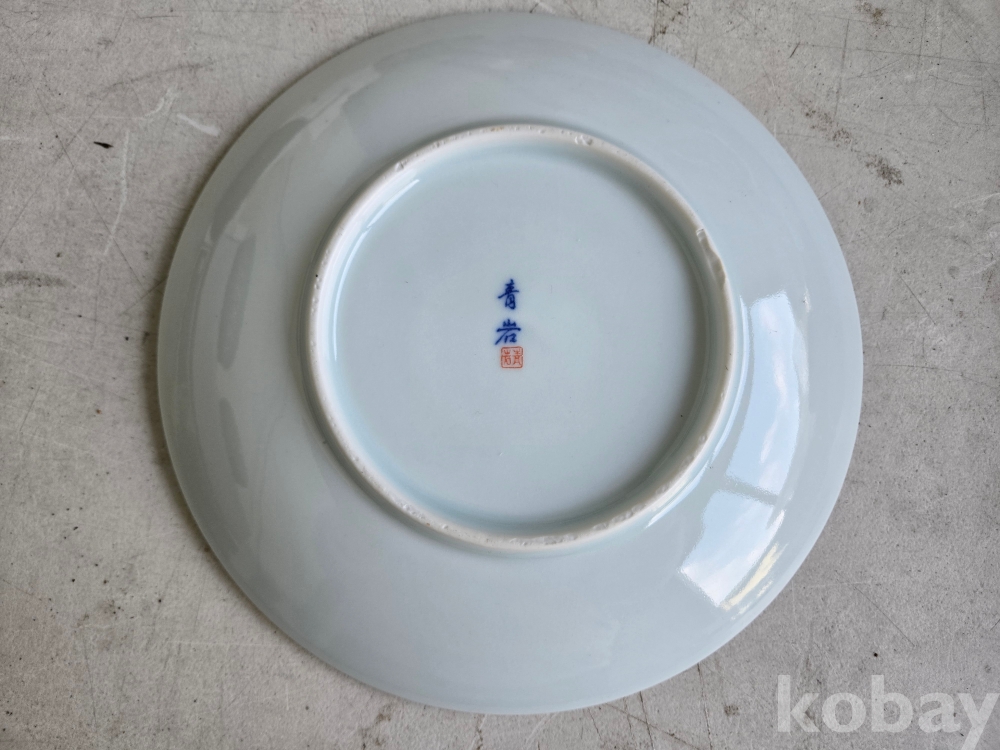 석암 도예가의 금분으로 학과 소나무 표현 접시 도자기 입니다.