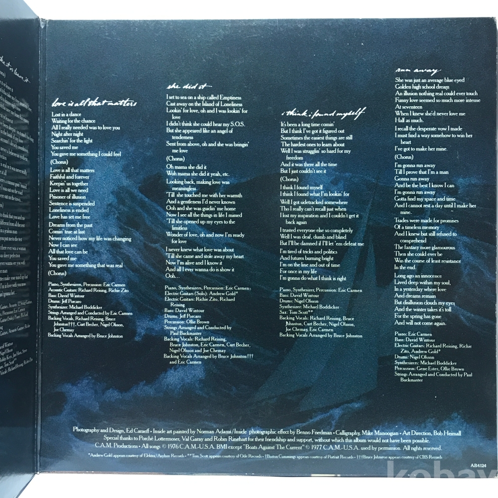 LP 30,900-142 ERIC CARMEN - BOATS AGAINST THE CURRENT_에릭카맨 . 78 수입 자켓 EX+ 알판 EX EX+