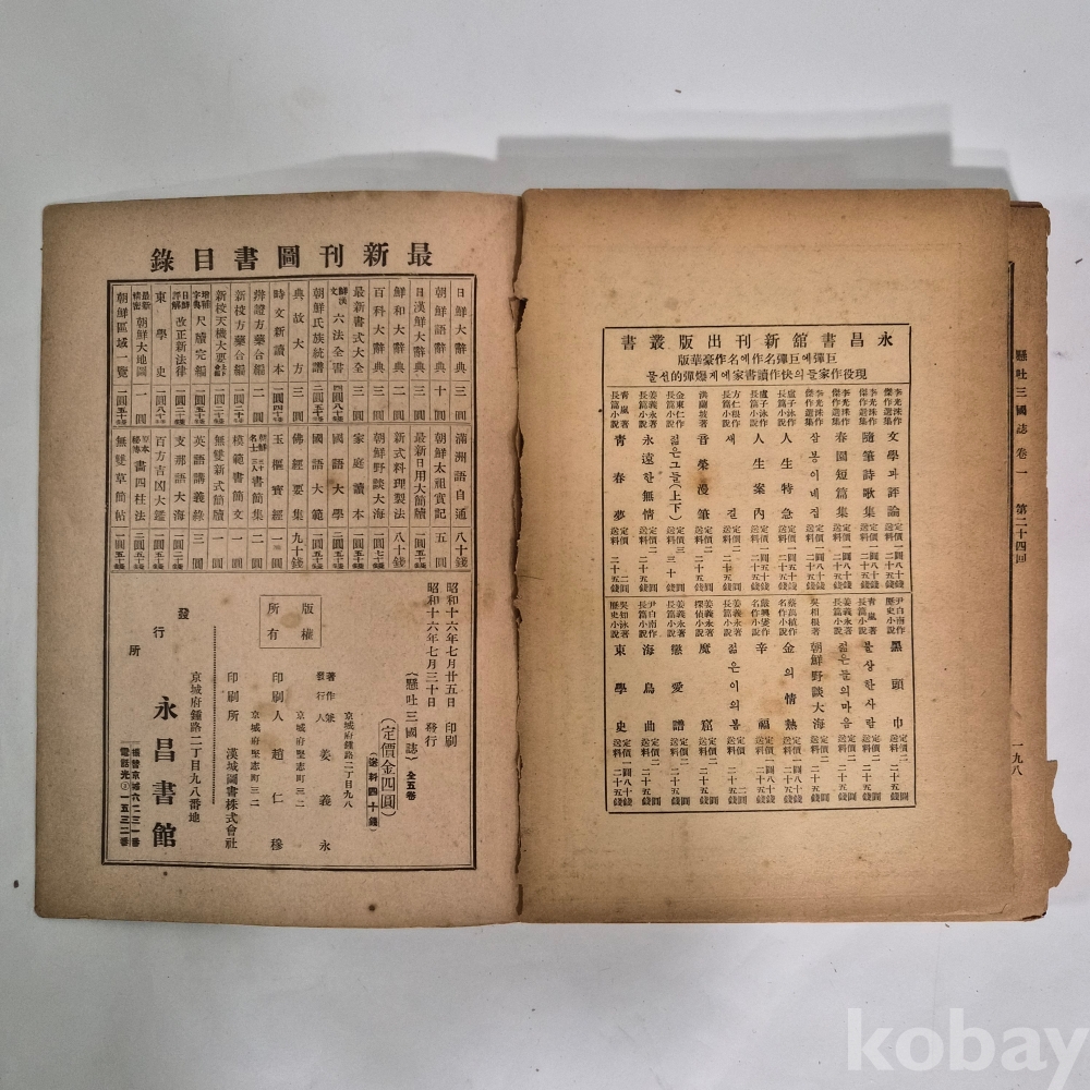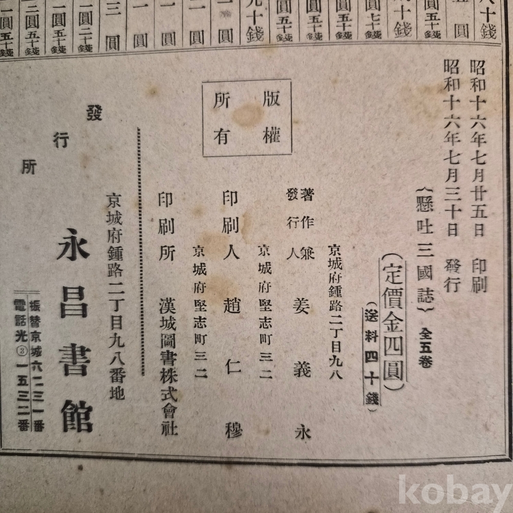 [희귀 근대사 자료] / 소화 16년 ‘토현 삼국지’ 초판 5권 완질
