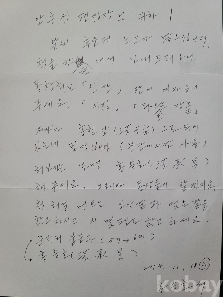 홍천안(문학박사: 1938) 저자서명 처녀시집.