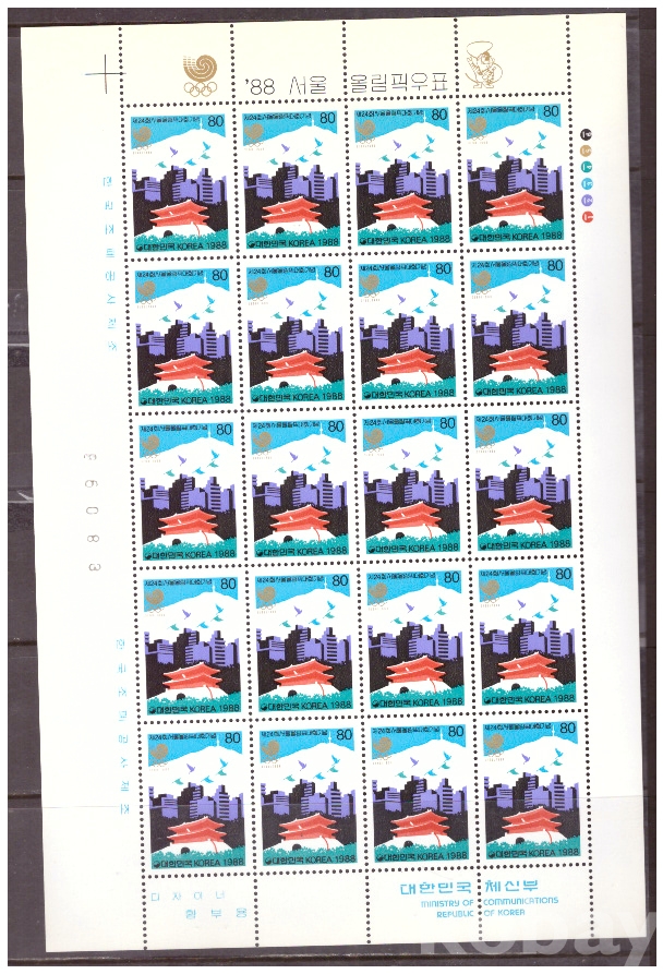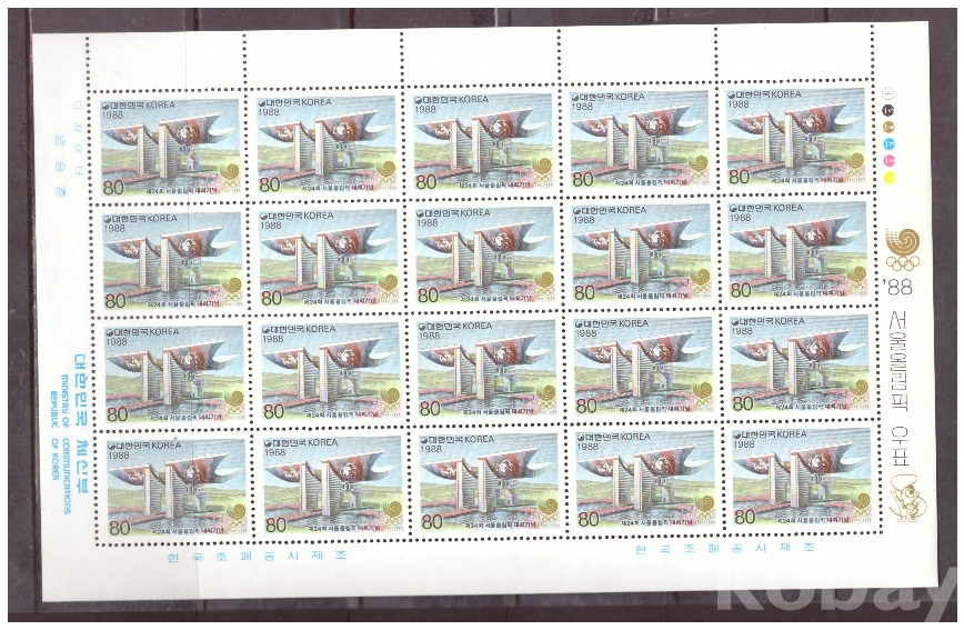 (서울올림픽) 1988.9.16 제24회 서울올림픽대회 4완 sheet of 20 MNH